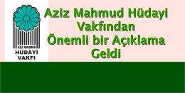 Aziz Mahmud Hüdayi Vakfından FLAŞ AÇIKLAMA